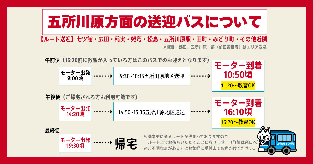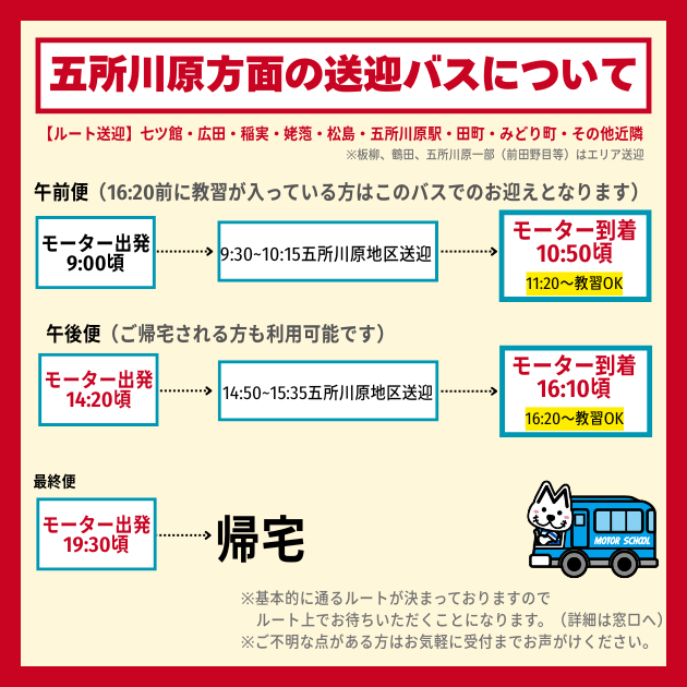 ※上記のエリアで送迎バスを運行しておりますが、お客様の希望する時間帯にそえない場合がございますのでご了承ください。